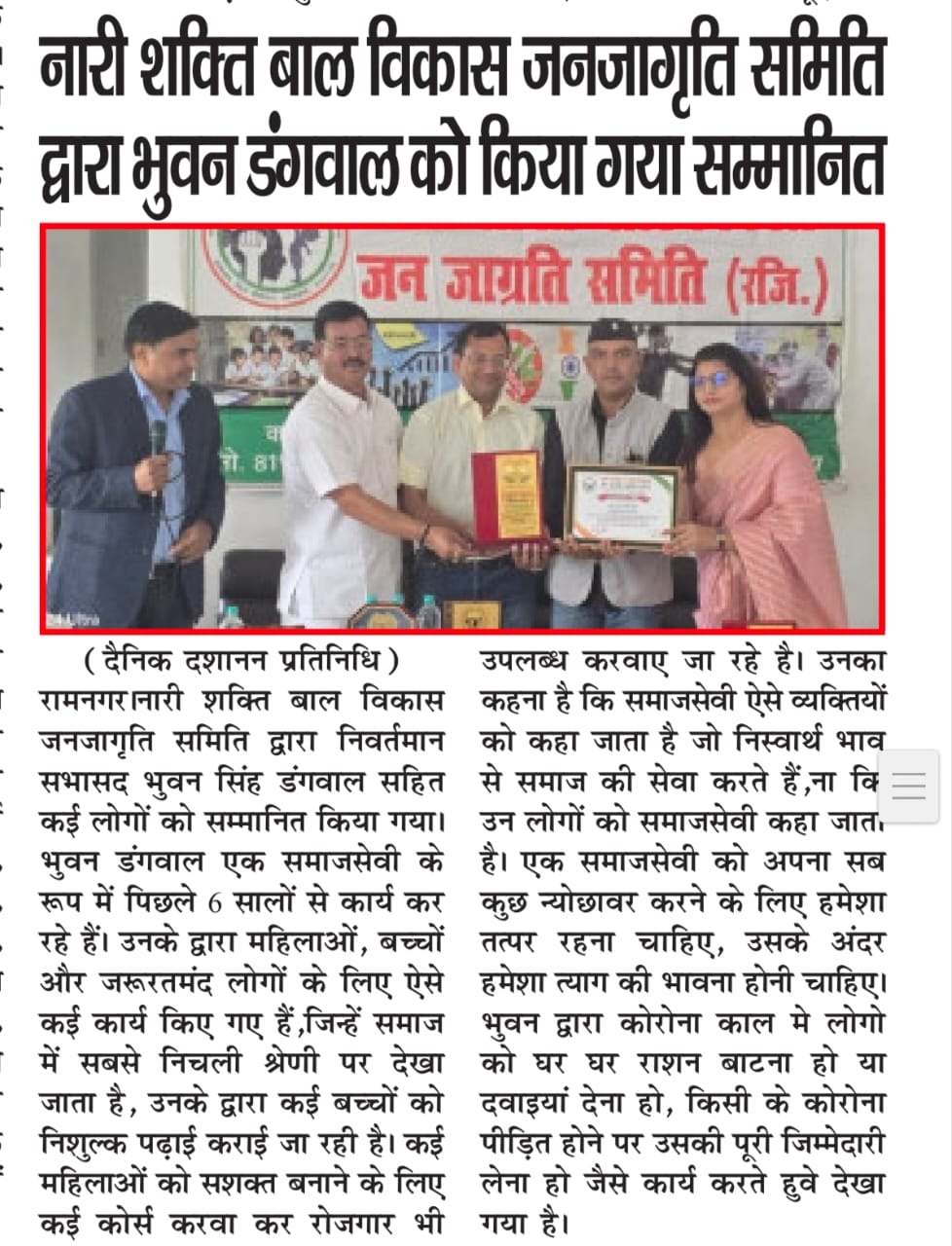 Nari Shakti & Child Development Awareness Committee is a registered social welfare organization working across Ramnagar, District Nainital, Uttarakhand to uplift women, children, and underserved families.